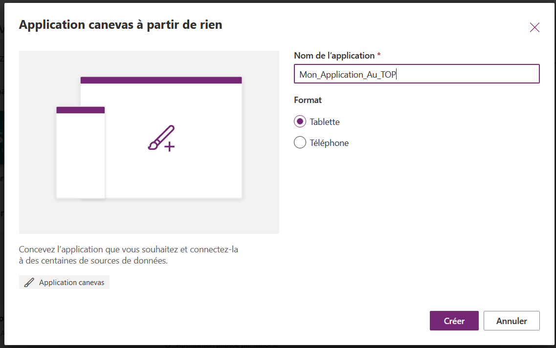 En effet, vous devez définit pour chacune des colonnes de la liste Sharepoint le type de format de la donnée ce qui évite les erreurs d’interprétation dans Power Apps :