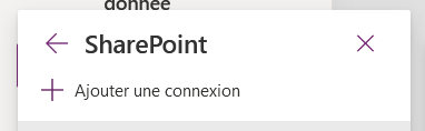 Si c’est votre première fois, félicitations, vous devez du coup créer une première connexion de type Sharepoint sur Power Apps. Pour ce faire, cliquez sur le + « Ajouter une connexion » :